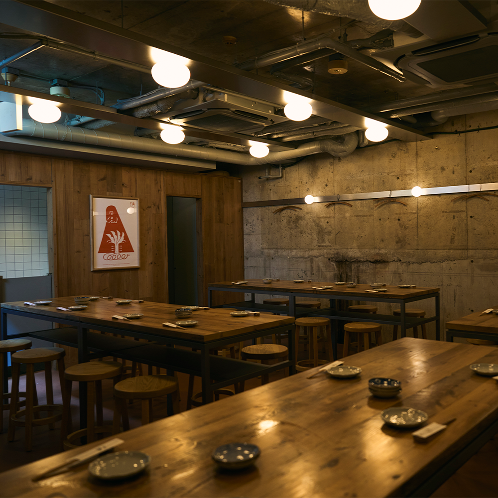 落ち着いた照明でゆったり過ごせる地下フロアは、6~8名様で座れるビッグテーブルをご用意。